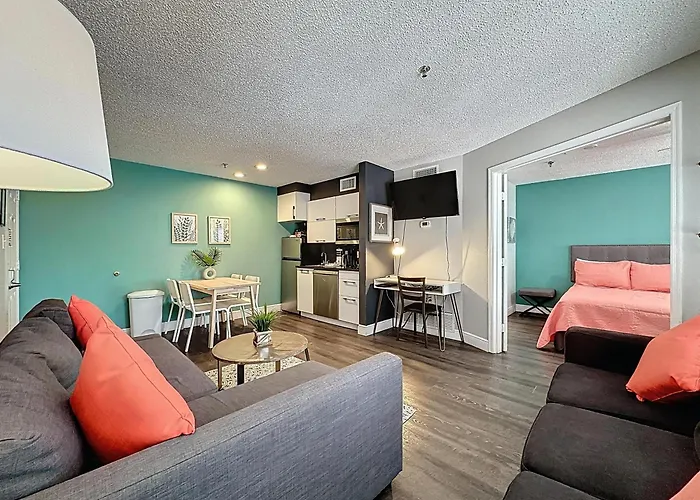 De villa in de Disney World wijk biedt zelfvoorzienende voorzieningen, zoals een ingerichte keuken en een eethoek buiten voor het gemak van de gasten. Er zijn ook koffie- en theevoorzieningen, een koelkast, een oven om uw eigen maaltijd te bereiden. Gasten vinden Charley's Steak House & Seafood Grille op loopafstand van nog geen 13 minuten. West Irlo Bronson Memorial Highway and Parkway Boulevard busstation is in de buurt van Two Bed Condo In Parkway Palms Resort villa gelegen.